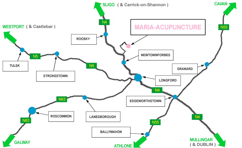 right to our door from the centre of Newtownforbes, Co. Longford. You can always call us at the Acupuncture practice on 086 8618633.